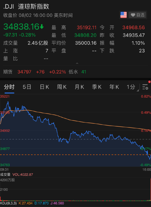 八月第一个交易日,美股表现并不好,三大股指中道琼斯指数和标普500指数均收跌,纳斯达克指数勉强翻红。