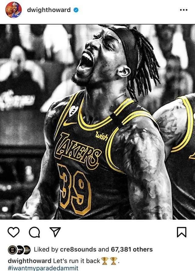 能够重回湖人,霍华德非常兴奋,第一时间在社交媒体确认了这一消息,他晒出身披湖人球衣怒吼的照片,并写道:让我们拿回总冠军!