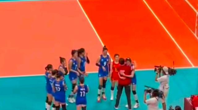 比赛结束之后,郎平与所有弟子逐一拥抱,现场哭成一团。