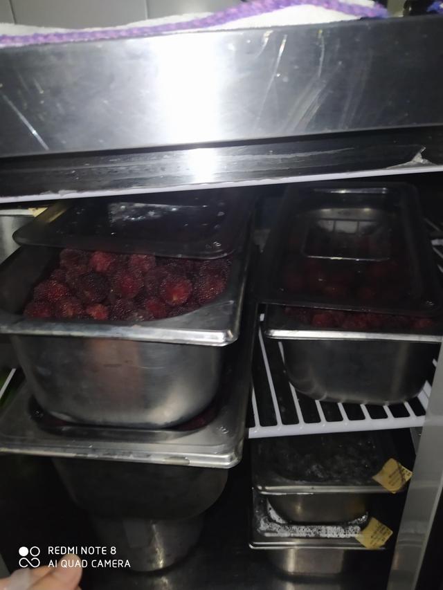 记者在“奈雪的茶”西单大悦城店后厨拍摄的水果堆放处。