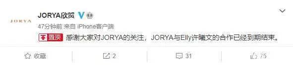 没多久清扬表示已经和小s的合约已经到期了,并且和小s的女儿合约也到期了。清扬发声没多久之后,大人糖和寿全斋厂商等全部与小s终止合约。