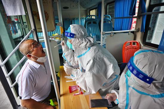 建邺区第三轮全员核酸检测已于7月30日基本结束,7月31日下午2点起,建邺区根据采样人员摸排情况、社区人口分布、周边环境等要素,创新工作方法,扩大核酸采样范围,在保留16个固定采样点的基础上组织100辆公交车变身核酸检测流动车,奔赴辖区6个街道604个网格,对行动不便的老人和未能及时赶往第三次检测点的居民开展补检工作。当天核酸采样完成后,建邺区会统一对车辆进行消杀处理。