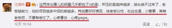 肖战的老板不是别人,正是新丽公司老总曹华益。而汪海林在评论区也坦言,这两年出事的明星都拍了新丽的剧,自己很心疼曹总。在他看来,肖战和粉丝都要好好表现,而他还奉劝肖战粉丝,不要再来帮倒忙了。
