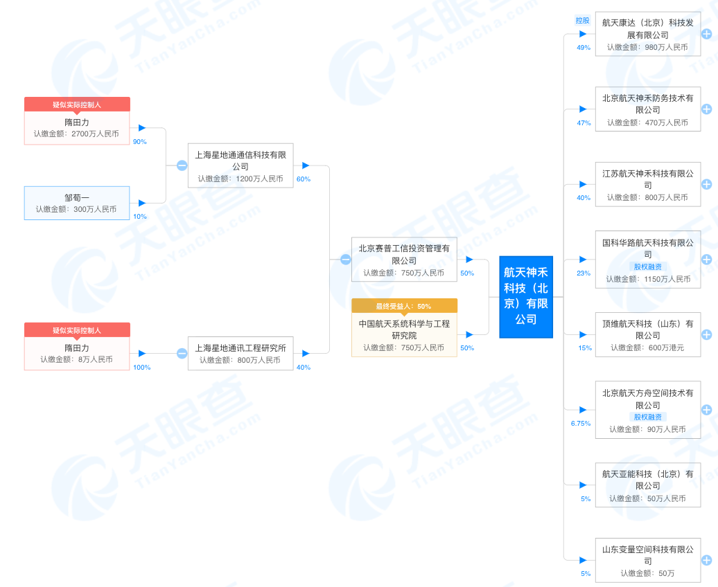 其中,隋田力被认为是这出所谓专网通信“连环雷”事件的关键人物。而航天神禾便是重要公司之一。界面新闻了解到,航天神禾注册资本1500万元,注册时间2009年7月,由北京赛普工信投资管理有限公司(简称“北京赛普”)、中国航天系统科学与工程研究院各持股50%;其中,隋田力通过上海星地通持60%股权的北京赛普控制航天神禾,并担任董事长。