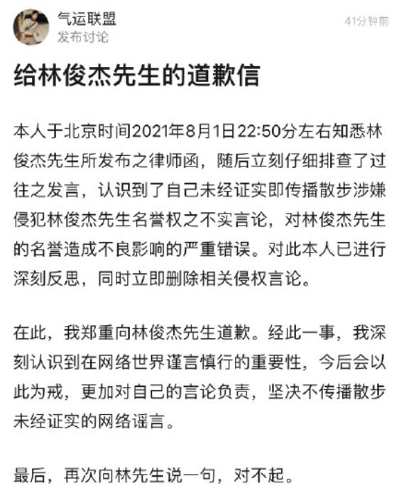 新金牌娱乐观察家发现,有很多网友出面道歉了,希望林俊杰老师大人不记小人过,可以原谅他们。可是法律是无情的,既然已经取证了,就要一告到底。粉丝也觉得林俊杰做得很好,如果不理直气壮一些,就会让别人有利可图。