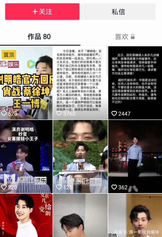 昨天,谢明皓工作室微博账号被禁言,但同名短视频账号没有受到波及,但我们再次查看这个账号的时候,发现谢明皓已经删除了“实名举报林俊杰和潘玮柏吸毒”的短视频!