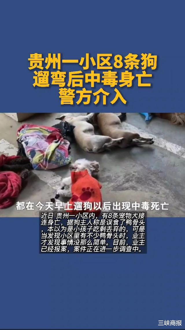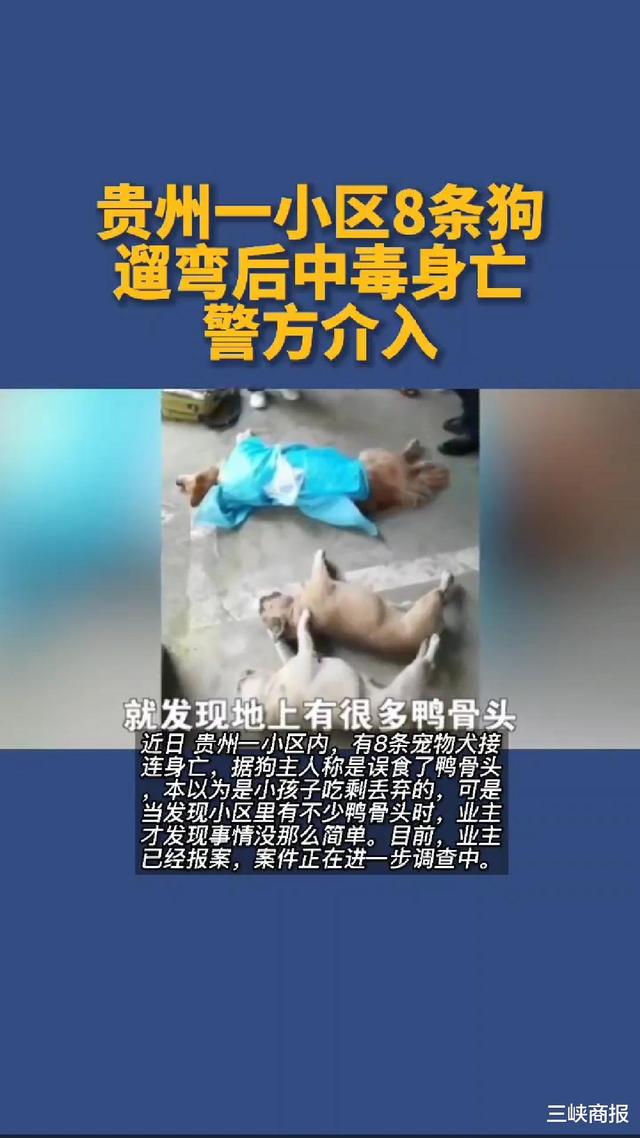 【摘要】 「本文来源:三峡商报」近日贵州一小区内,有8条宠物犬接连身亡,据狗主人称是误食了鸭骨头,本以为是小孩子吃剩丢弃的,可是当发现小区里