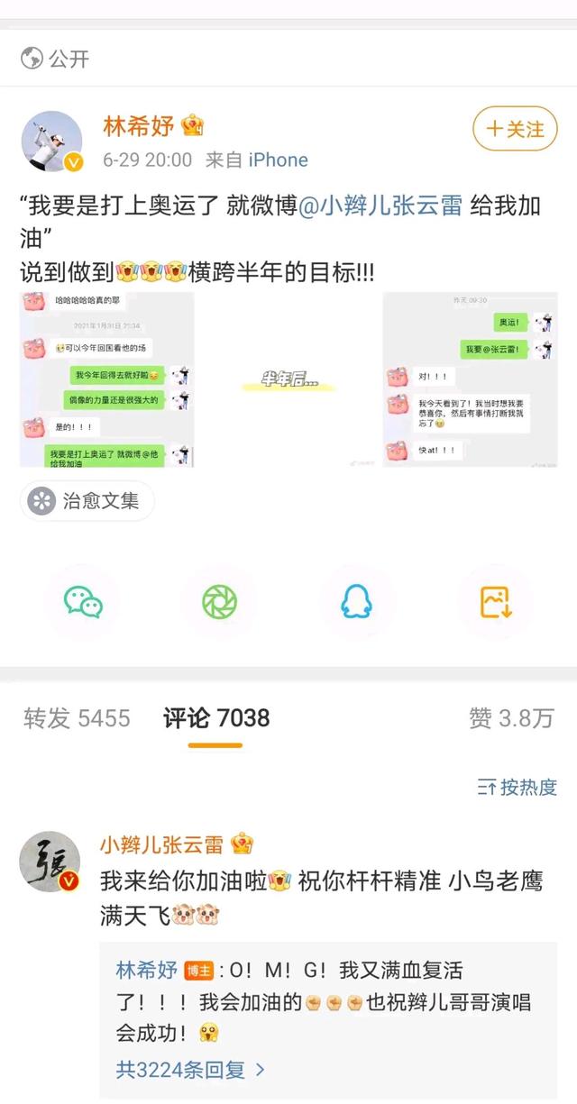 在之前,就已经有入选奥运会的运动员林希妤特地发文,希望辫儿哥哥张云雷为她加油。