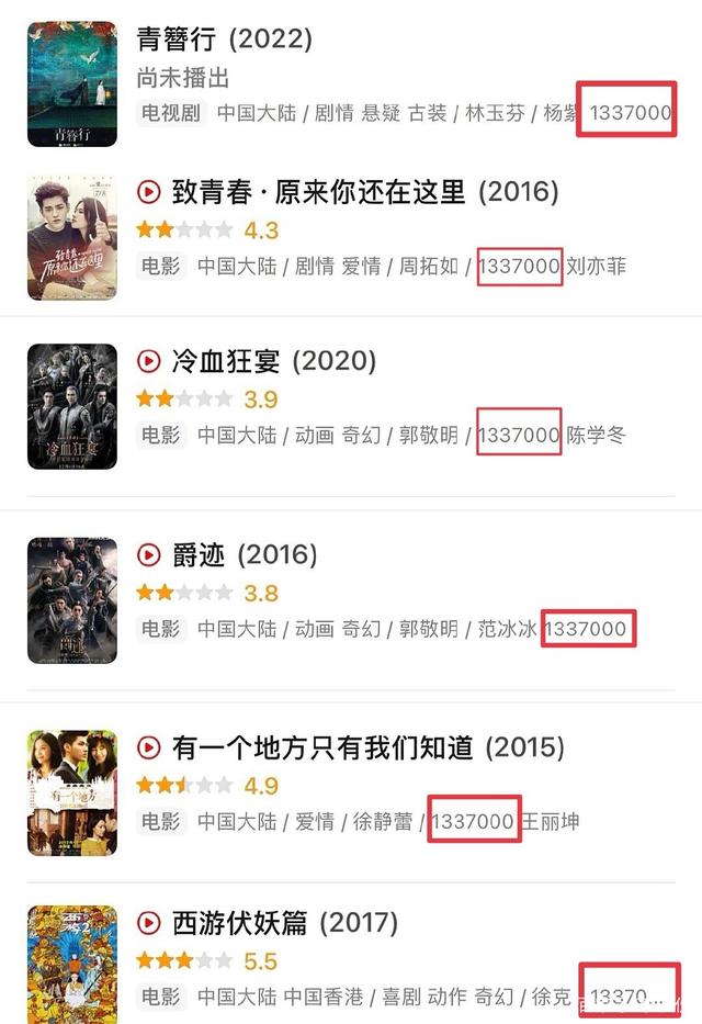 有网友发现,在搜索吴亦凡以往的作品时,演员表中吴亦凡这个名字消失了,而是全部变成了数字代号1337000,这可是真正的“查吴此人”了!相信不久后,吴亦凡此前的作品该下架的会下架,该删减的会删减,曾经的顶流吴亦凡将被抹去一切存在过的痕迹。