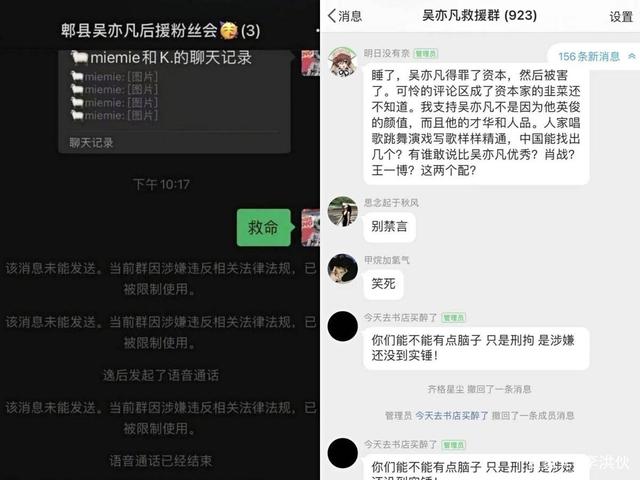 除此之外,吴亦凡这个名字也成了大忌,先是有网友发现郫县吴亦凡后援粉丝会的群被封,随后,只要是群名中带有“吴亦凡”的聊天群都被禁封,看来那些幻想着去监狱陪哥哥,集体救援吴亦凡的忠实粉们是再没机会了啊。