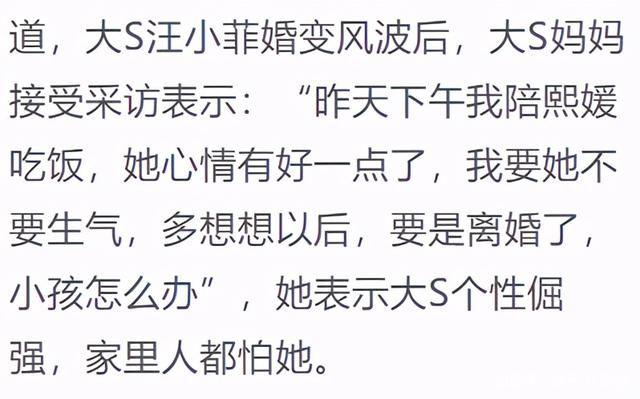 除了小S本人,其姐姐大S前段时间也曾因为自己的言论受到争议,当时还被传出赌气要和汪小菲离婚。