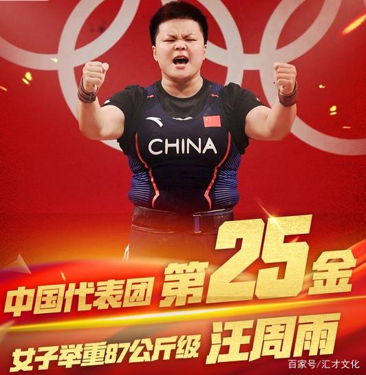昨天整个上午波澜不惊,下午三点开始就风云际会,捷报频传了。先是举重赛场,在女子87公斤级决赛中,中国选手汪周雨以270公斤(抓举120公斤,挺举150公斤)获得冠军,这是中国举重在本届奥运会的第六金。也是中国奥运代表团的本届奥运会第25金!
