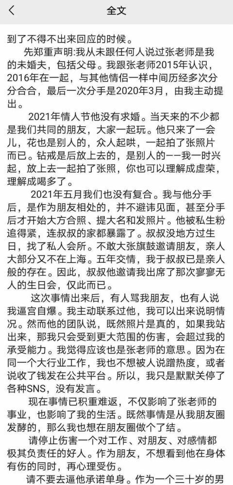 八月二日,怀疑王佩雯发长文回应与张哲瀚的恋情。对于网络传闻,她慷慨地承认两人的确在一起。但去年三月,两人正式分手,从去年到今年没有复合。就截图而言,王佩雯的确与传闻中提到的相同,于2016年与张哲瀚在一起,中间经历了多次分分合合。但两人在去年三月分手后,又回到了好朋友的身份,并没有像传闻中那样,两人订婚了。她解释说,网上传的照片,花和戒指都是别人的,私人会所的生日照片她是以朋友的身份出席的。如此清晰的解释,不仅让网友了解事情的来龙去脉,还给粉丝们吃了定心丸。