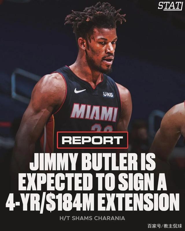 除了球哥之外,今天还有几份大合同。据NBA名记Shams报道,巴特勒4年1.84亿美元顶薪提前续约热火!巴特勒目前的合同是4年1.42亿美元,还有两年才到期。新合同将从2022-23赛季开始执行,替代原有合同的最后一年。