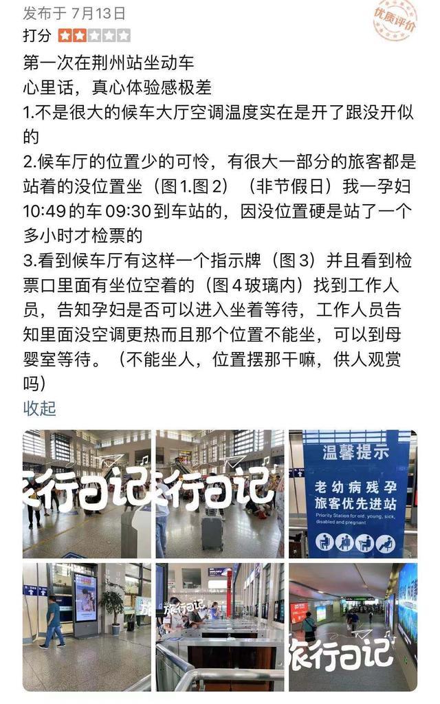7月13日,大众点评网友在“荆州火车站”页面评论截图。