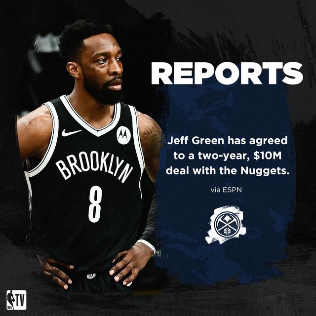 根据NBA著名记者WOJ报道,杰夫-格林以2年1000万美元加盟掘金队,合同第二年为球员选项。