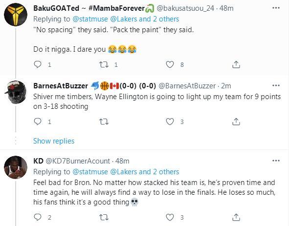 有一位网名为KD的球迷表示:为勒布朗感到难过,不管他的球队有多强大,他一次又一次证明自己总会在总决赛找到输球的办法,他失去了这么多,他的粉丝还认为这是一件好事。