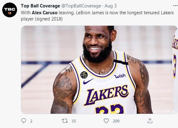 在卡鲁索离开湖人后,勒布朗-詹姆斯成为在湖人效力时间最长的球员,自2018年就开始为湖人打球,每一年他身边的球员都会有一些变化,所以引来了部分球迷的不满,詹黑又抓住了机会。