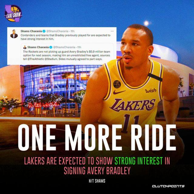 除此之外根据《雅虎体育》记者克里斯-海恩斯的消息,湖人队还有意签回艾弗里-布拉德利这位湖人旧将,在19-20赛季布拉德利曾为湖人打球,不过停赛后他拒绝进入园区为湖人出战,他也拒绝执行了20-21赛季的球员选项最终转投热火,热火将他交易到了火箭,火箭拒绝执行他最后一年的球队选项,他成为了自由球员。