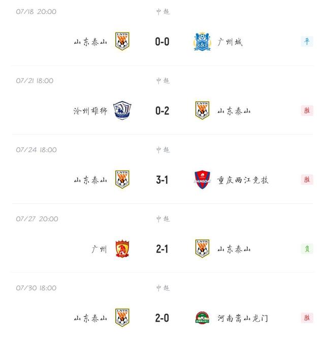 山东泰山上轮比赛2-0轻取河南嵩山龙门,重回胜利轨道。近5场比赛3胜1平1负,发挥稳定。联赛10轮过后6胜3平1负积21分,重新占据赛区和总积分榜榜首。