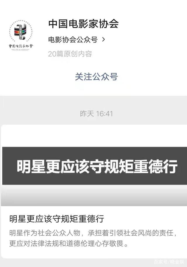 中国电影家协会此次的评论文章标题为《明星更应该守规矩重德行》,文章直接点题说:“吴亦凡事件引起社会各界的高度关注,广泛热议,其行为严重破坏行业风气,引发恶劣的社会影响。”