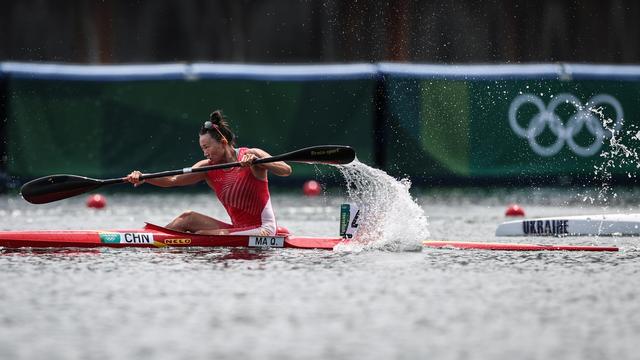 8月2日,中国选手马青在女子200米单人皮艇四分之一决赛中。新华社记者潘昱龙摄