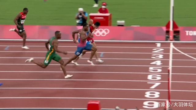 因为在预赛留力,半决赛中苏炳添毫无保留地展现出了个人的最佳状态。不过细心的观众不难看出,在苏炳添撞线的一瞬间,身旁第5道的意大利人,也就是在之后决赛中夺冠的选手雅各布斯已经严重偏离跑道,即将踩到苏炳添所在的第4道跑线上,并在苏炳添冲刺的关键时刻有一个打手动作,一定程度影响了苏神的撞线。