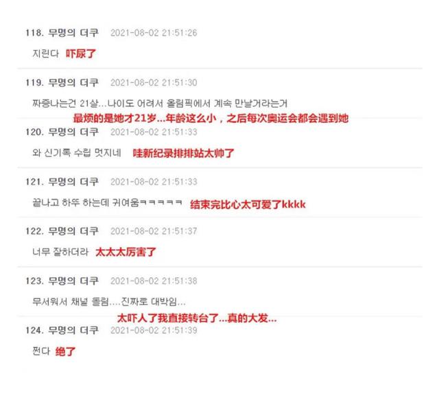还有韩国网友表示很烦李雯雯的年龄,因为李雯雯今年才21岁,之后的几届奥运会都会有她,所以韩国网友们就感到非常绝望