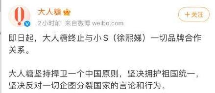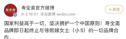 在小S的言论引起诸多争议之后,网友以及品牌并不买账,不仅网友对小S进行了抵制,而且有很多与她合作的品牌都在评论下面宣布与她解约了,比如寿全斋,清扬,大人糖等等,全部对外官宣与小S终止了合作。