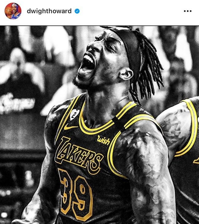 在重返湖人后,霍华德在社交媒体上晒出身披湖人球衣怒吼的照片,并写道:“让我们拿回总冠军。”