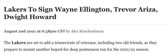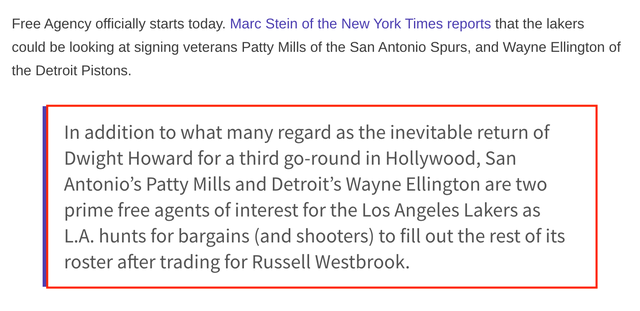 在推动涉及拉塞尔-威斯布鲁克的交易之后,湖人也就成为拥有三巨头阵容的球队,同时这也让他们成为绝大部分老将自由球员的向往之地,毕竟加盟这支湖人也就意味着会有冲击总冠军奖杯的机会。