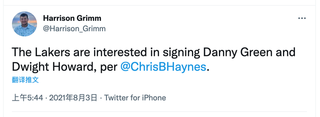 不仅是艾灵顿、阿里扎和霍华德等球员,据美媒哈里森-格林的说法,湖人也对签下功臣旧将丹尼-格林的想法感兴趣: