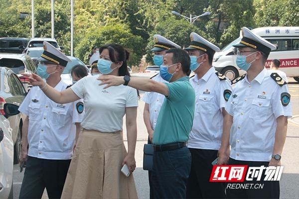 医院党委书记刘建军与株洲市卫生计生综合监督执法局蒋国荣局长一行现场督查疫情防控工作。