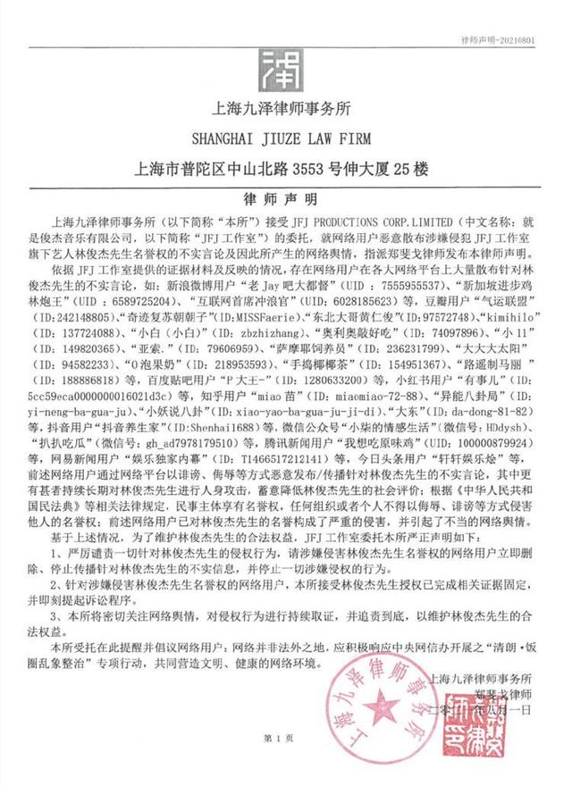 于是,林俊杰工作室非常迅速,对无凭无据散播的网友和营销号进行提告,而且是全平台所有网友,一个都没落,这份律师函发得实在是非常详细,这份律师函发得实在是非常详细。