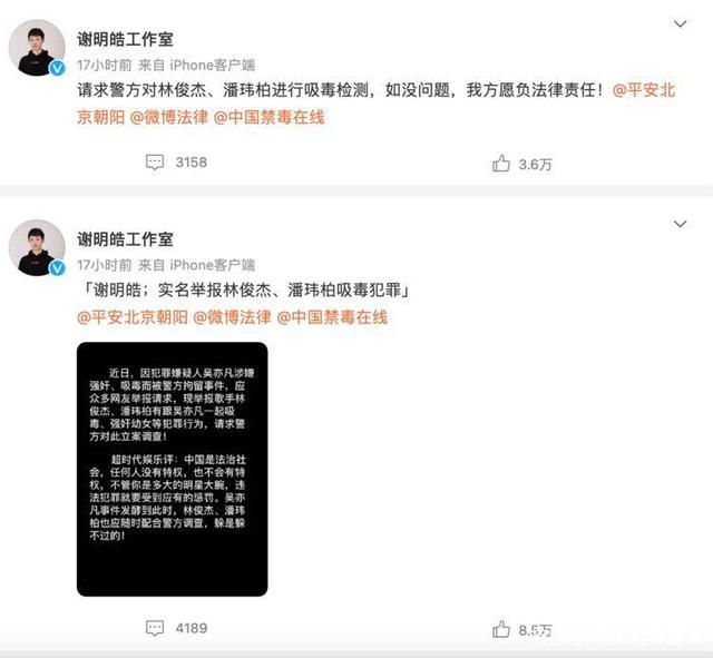 这个谢明皓的工作室,连发多条动态,并要求艾特国家官方媒体出面对这二人进行发毛验毒,言之凿凿地确定他们违法,这可不是开玩笑的。