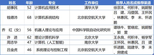 此外,北京大学许进因理论计算机科学工作突出也是候选人之一,北京航空航天大学钱德沛在计算机系统结构领域的工作获得了新任教育部党组书记怀进鹏的“认可”。