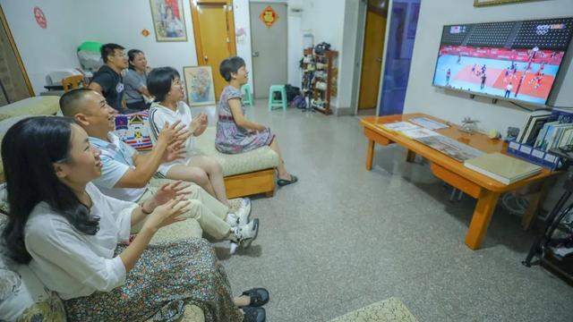 在观赛过程中,林宪杉还不时跟大女儿林祖雯以及小女儿林诗诗讨论战况。一家人的情绪都被这颗球所调动,女排赢球了,一家人鼓舞欢呼;女排输球了,一家人加油鼓劲。