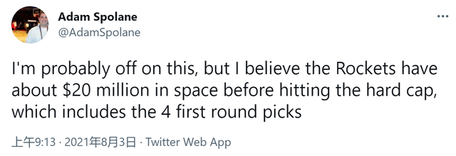 因此,在打造16人阵容之后,火箭队还有接近2000万美元的空间可以使用。