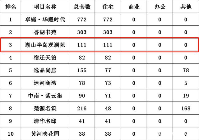 恒大集团目前宿迁在售的项目,恒大湖山半岛。7月,恒大湖山半岛住宅共备案111套,排名第3。