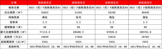 8月5日,即将开拍位于绿地·城际空间站西侧的4宗涉宅用地,起拍楼面价均2455元/㎡,上限楼面价3614元/㎡。
