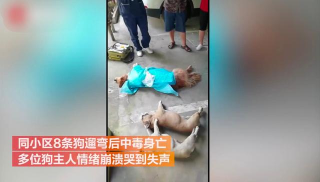 标题:贵州一小区8条狗中毒身亡,狗主人崩溃痛哭