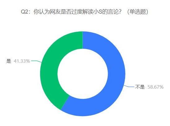 58.67%的受访者认为网友不是过度解读小S的言论,41.33%的受访者认为网友过度解读小S的言论。
