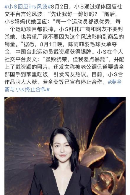 也正因为如此,网友的声音越来越大,随后有四个品牌宣告与小S终止合作。目前小S也回应了此事。