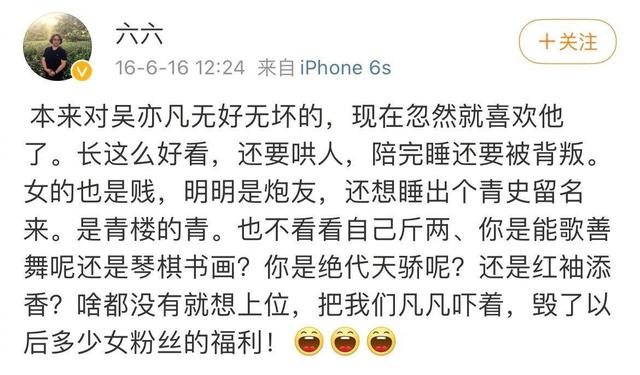 六六声称吴亦凡shui粉丝是粉丝的福利,炮轰小G娜想上位,纠缠吴亦凡。