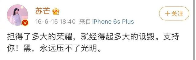 时尚圈名人苏芒也忍不住跳出来说支持吴亦凡,声称黑压不了光明。