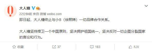 小S言论塌房后,到目前为止并没有任何回应,倒是与她合作的品牌方,以最快的速度终止合作。