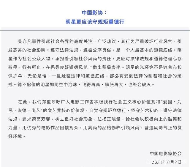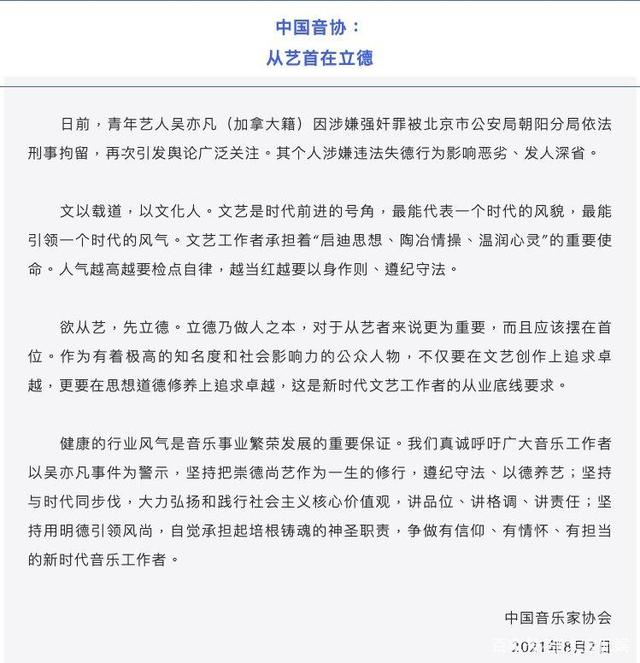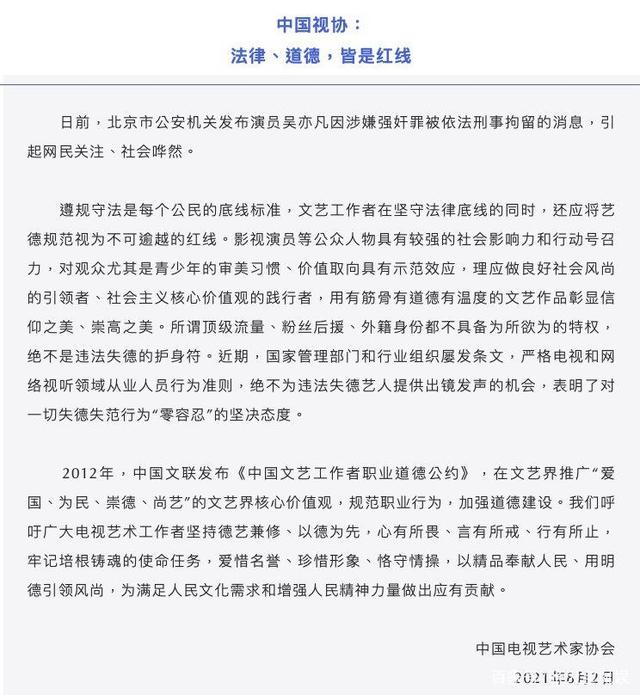 但是这次都美竹对吴亦凡的爆料让他彻底被扳倒,从品牌方纷纷解除合约到如今全网封杀,除了人民日报等官媒,刚刚电影协会、电视协会、音乐协会齐发声,法律面前人人平等,学艺先立德。