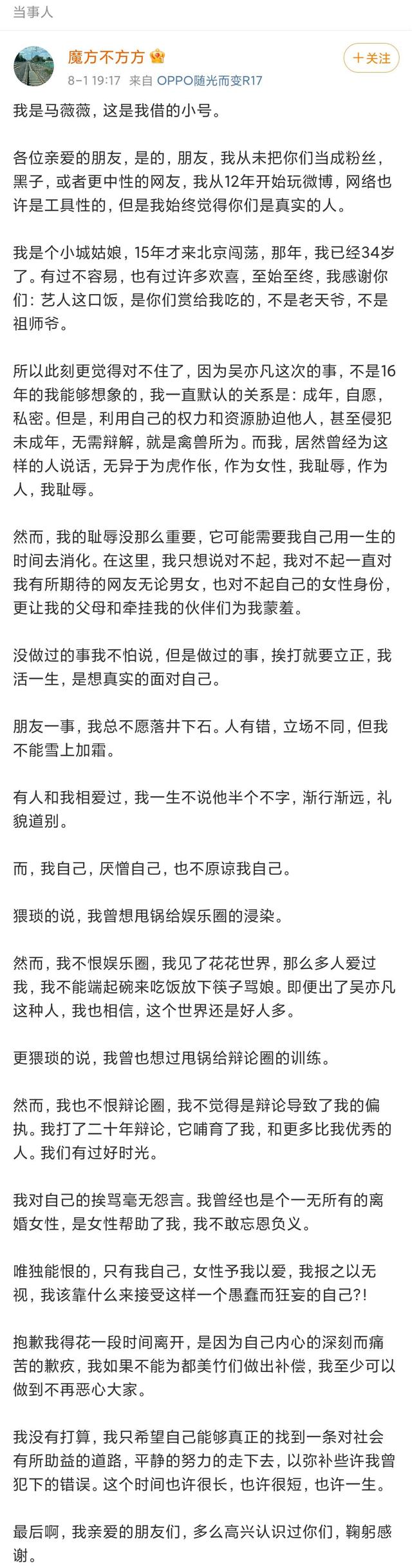 随后马薇薇也顶不住压力,发文道歉,并宣布退出娱乐圈: