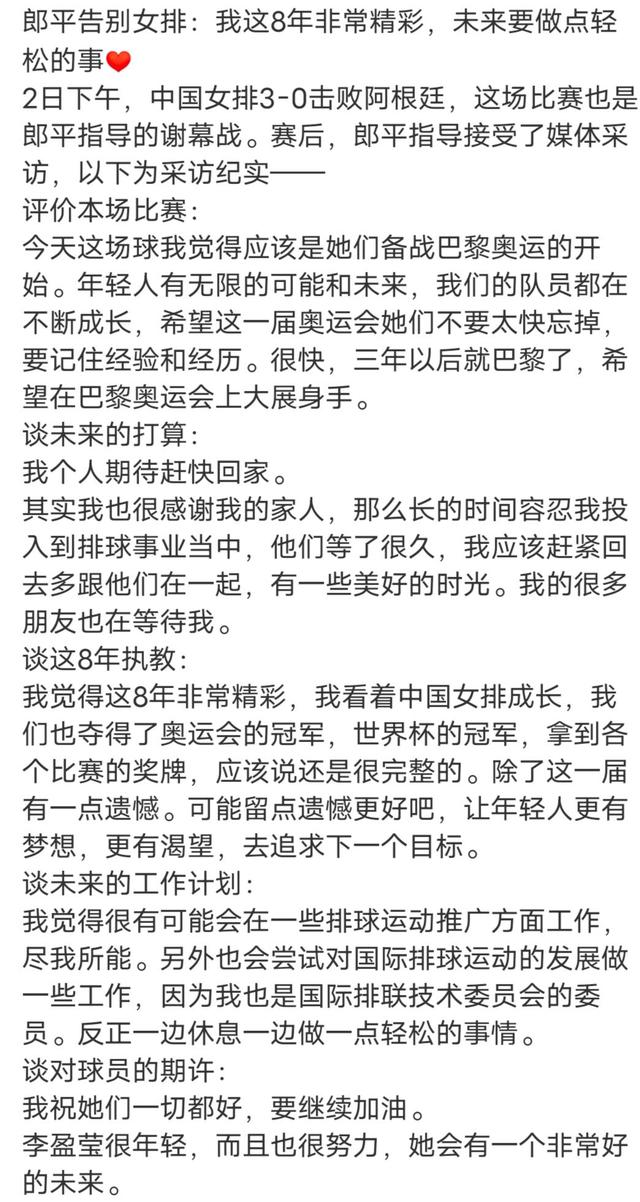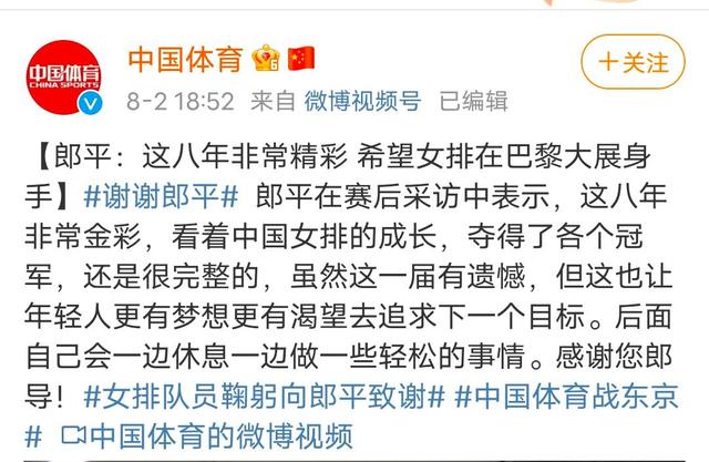 听到这个消息,网友也是纷纷表达了对郎导的不舍,并表示阳光总在风雨后,女排精神就是永不言弃,我们巴黎再战!