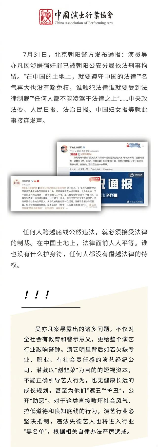 三个协会声明的重点,都是放了吴亦凡本人的失德行为和破坏行业风气,没有扩大补充其他内容。